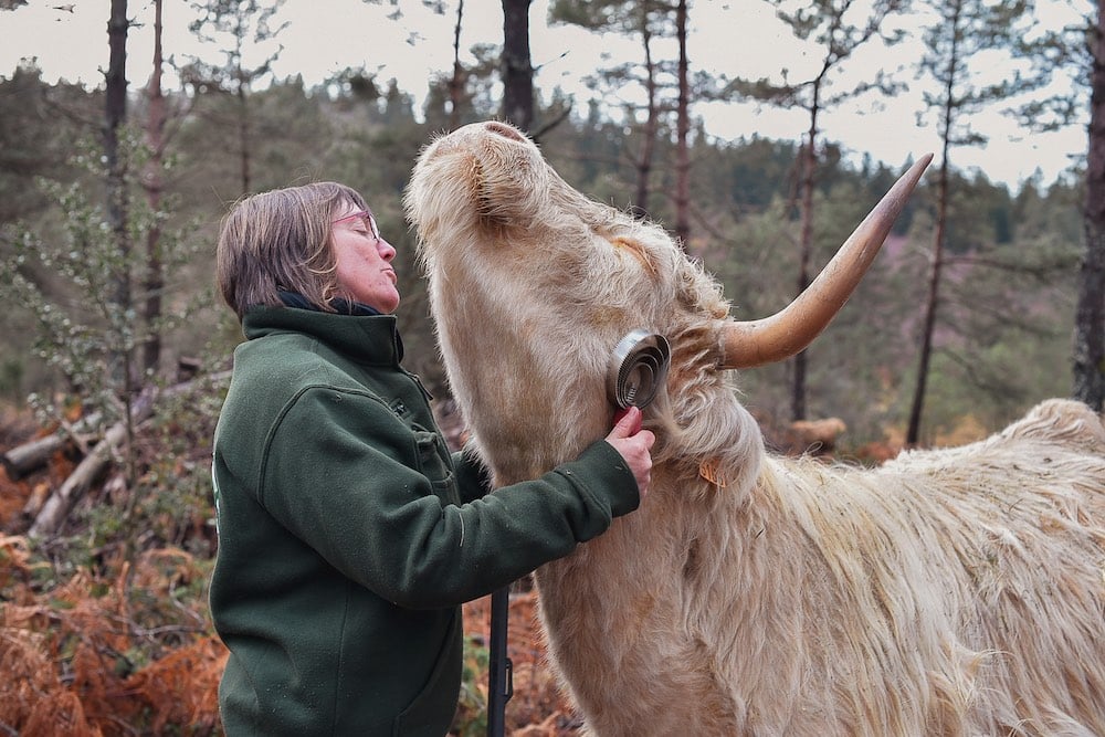 Sabine (Ferme de Jolie Fleur), quand elle emmène les gens découvrir les vaches highlands